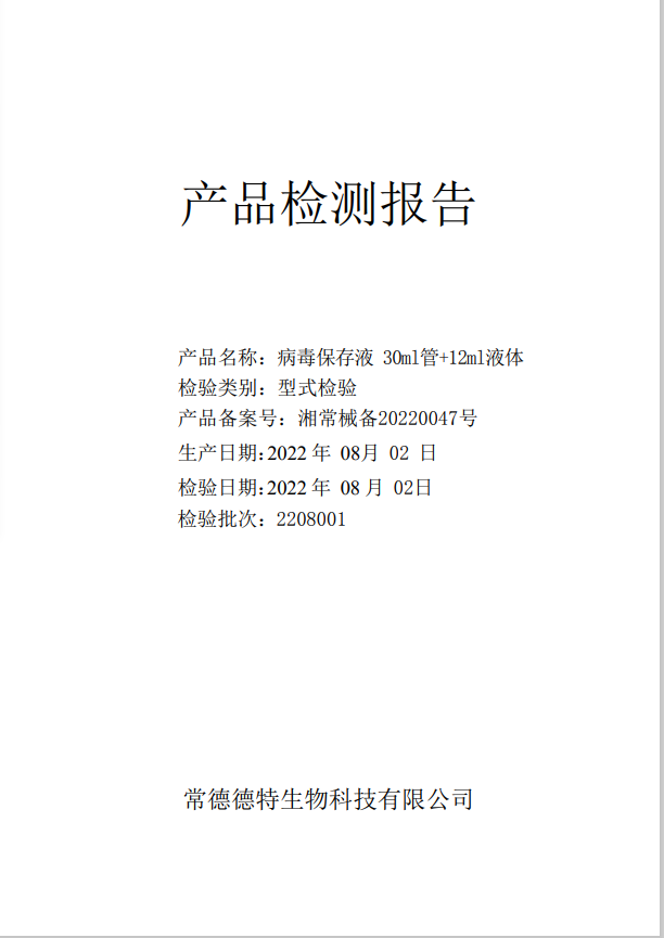 德特 病毒保存液 30ml管+12ml液體(C-03滅活型)質(zhì)檢報(bào)告-生產(chǎn)批號(hào)2208001生產(chǎn)日期20220802