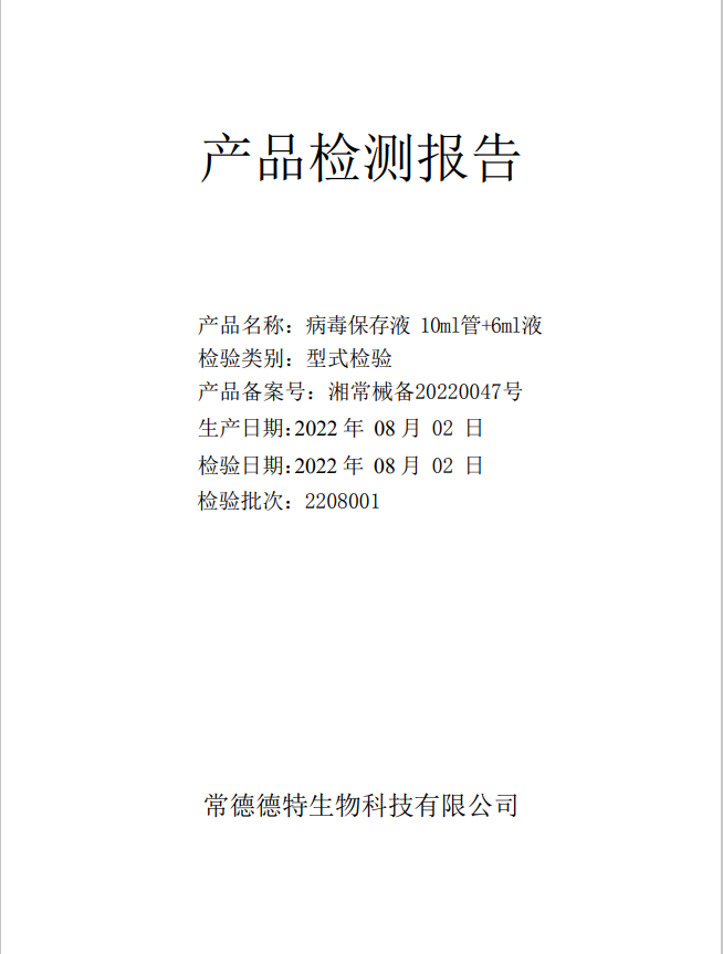 德特 病毒保存液 10ml管+6ml液體(C-03滅活型) 質(zhì)檢報(bào)告-生產(chǎn)批號(hào)2208001 生產(chǎn)日期 20220802