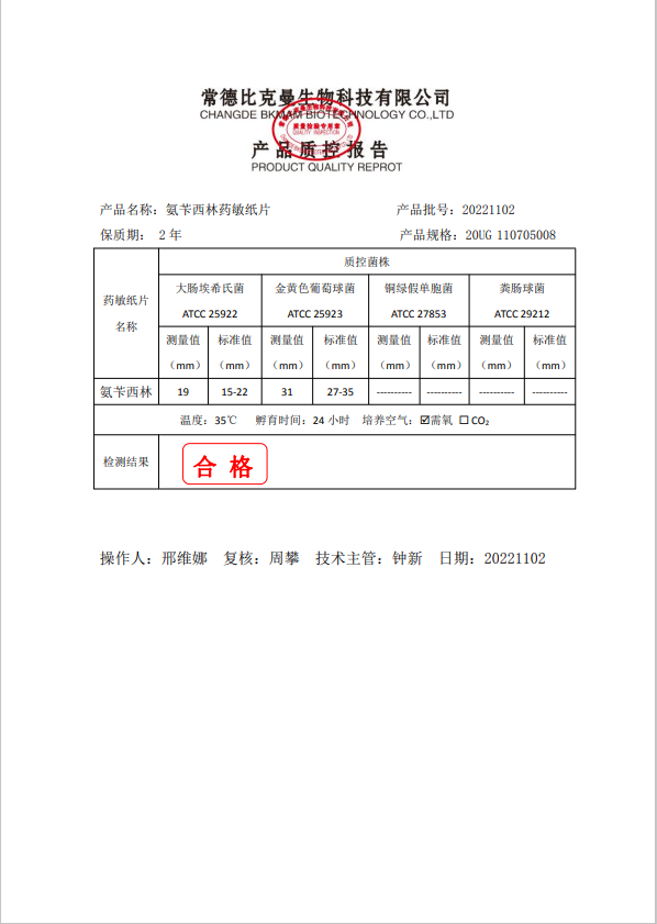 比克曼生物 氨芐西林 20UG 110705008 20片瓶 20221102