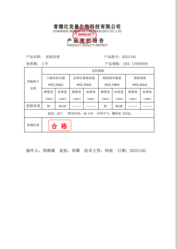 比克曼生物 亞胺培南 10UG 110705058 20片瓶 20221102