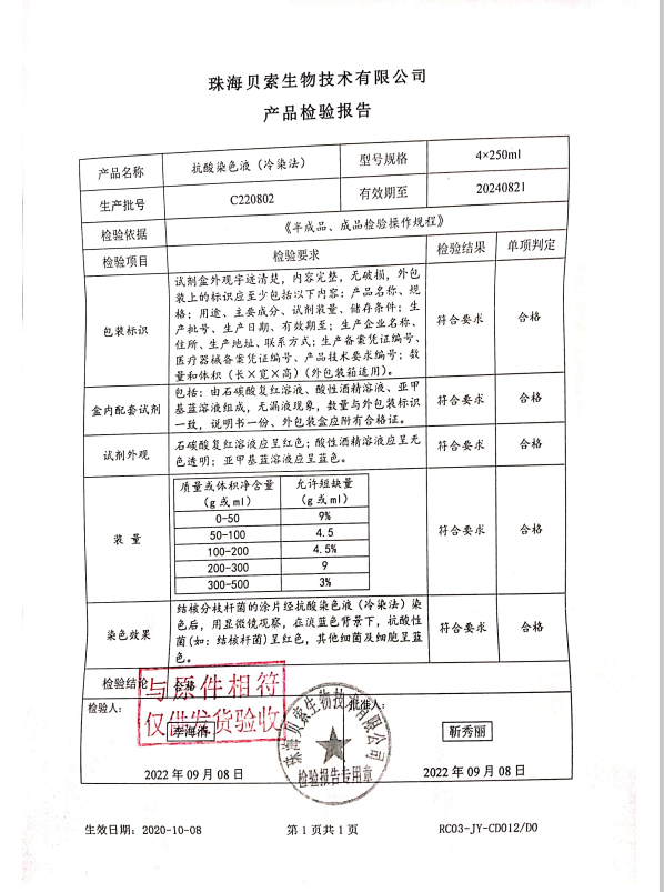 貝索 抗酸染色液(冷染法) 4x250ml C220802