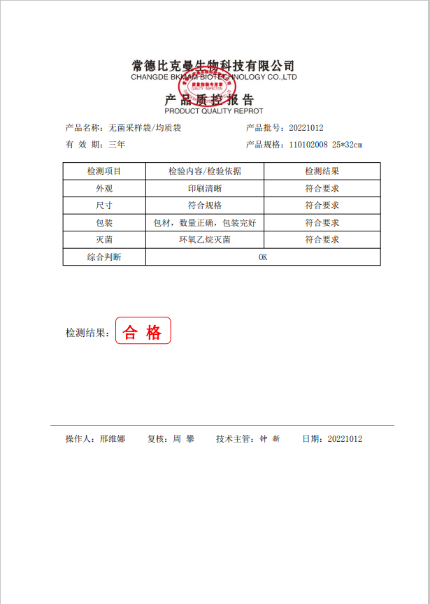立式無菌采樣袋 25x32 (帶壓條) 50個裝 110102008 20221012
