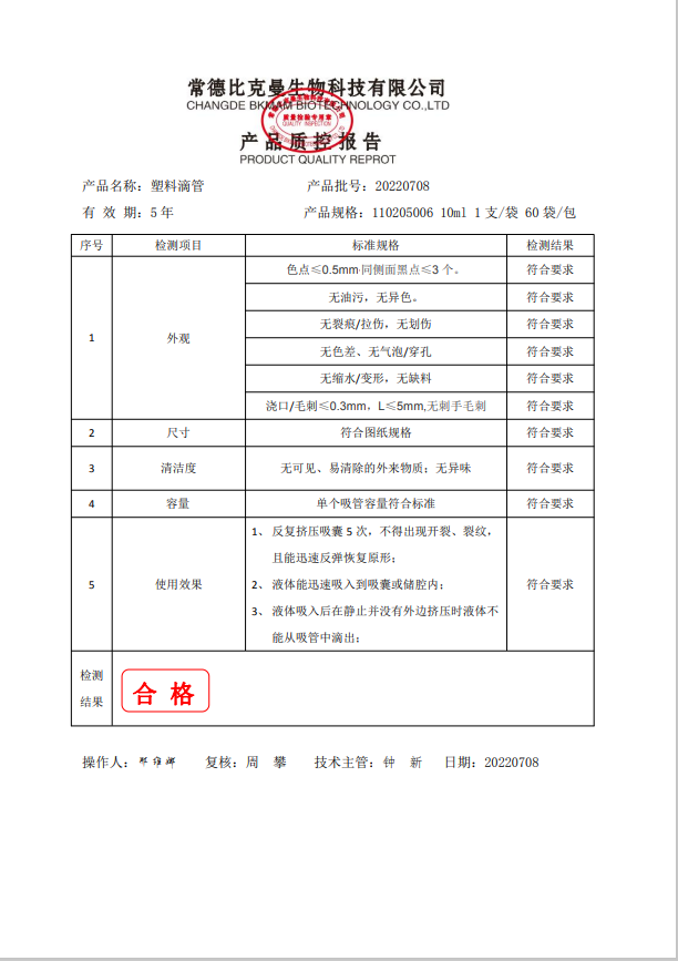 塑料滴管(紙塑獨立) 10ml 1支袋 60袋包 110205006 20220708 質(zhì)檢報告