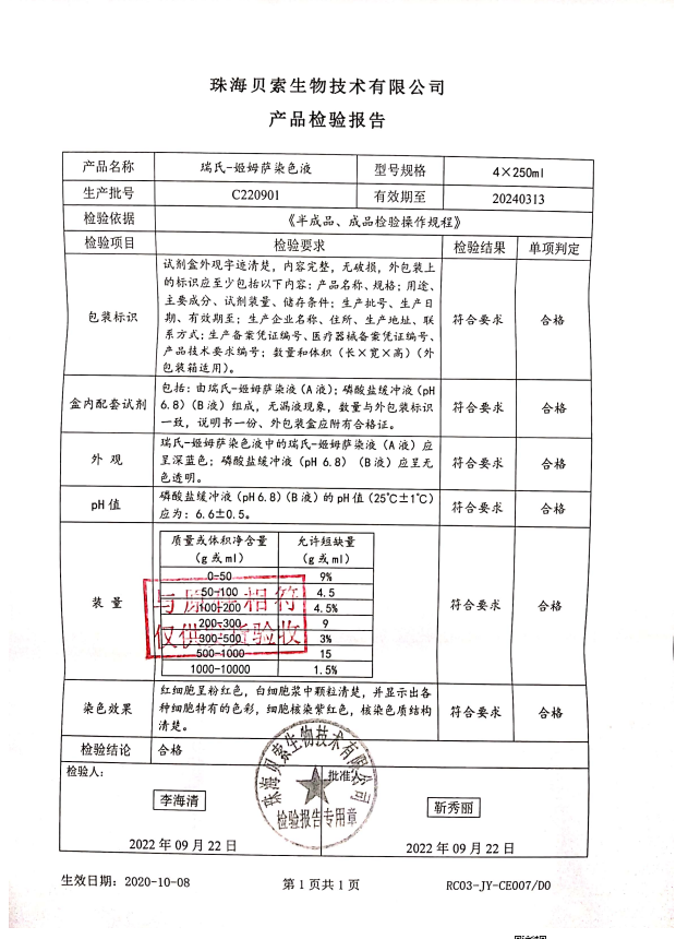 貝索 瑞氏-姬姆薩染色液 250mlx4 C220901
