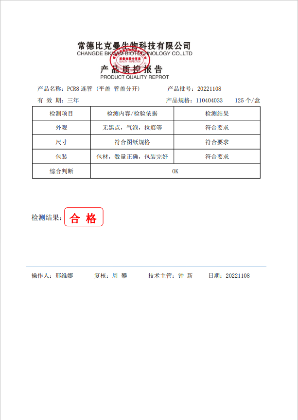 110404033 0.2ml PCR8連管 (平蓋 管蓋分開(kāi)) 125個(gè)盒 20221108