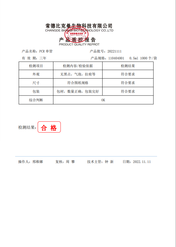 110404001 PCR單管 0.5ml PCR單管 1000個袋 20221111