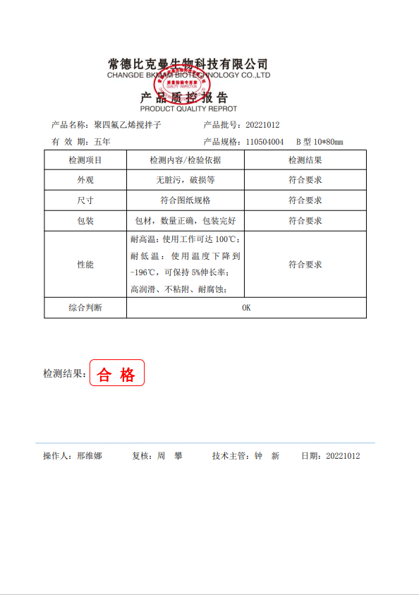 110504004 聚四氟乙 攪拌子 B型 10x80mm 20221012