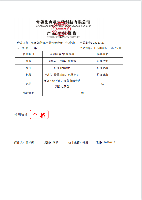 PCR八連排管 0.2ml PCR8連管配平蓋管蓋分開 (全透明) 125個盒 110404005 20220113