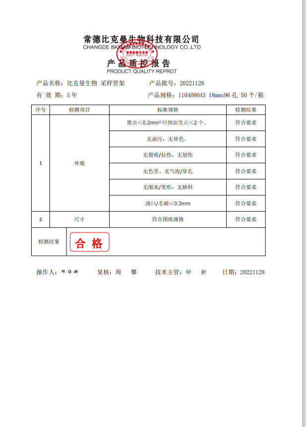 110409043 采樣管架96孔 18mmx96孔 PP 20221128