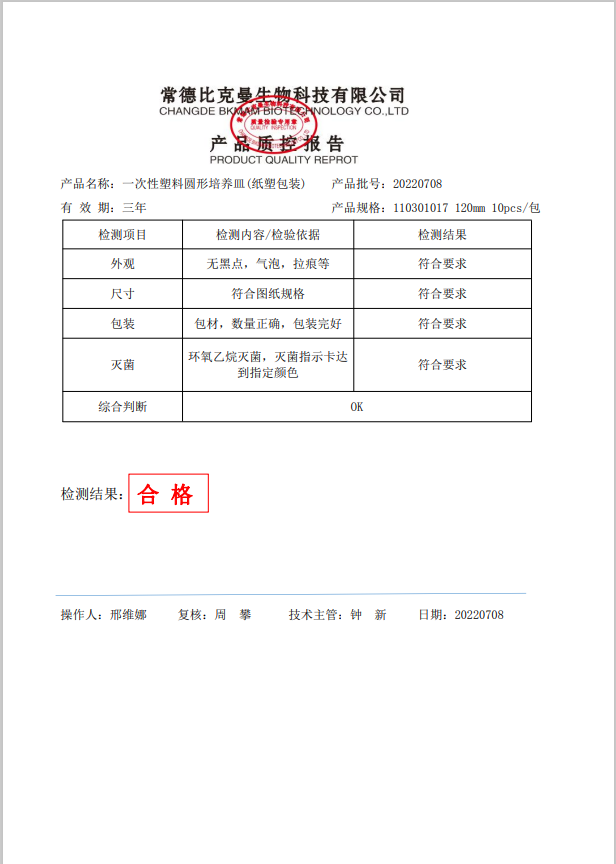 110301017 一次性圓形塑料培養(yǎng)皿 (紙塑包裝) 120mm 10個(gè)袋 20220708
