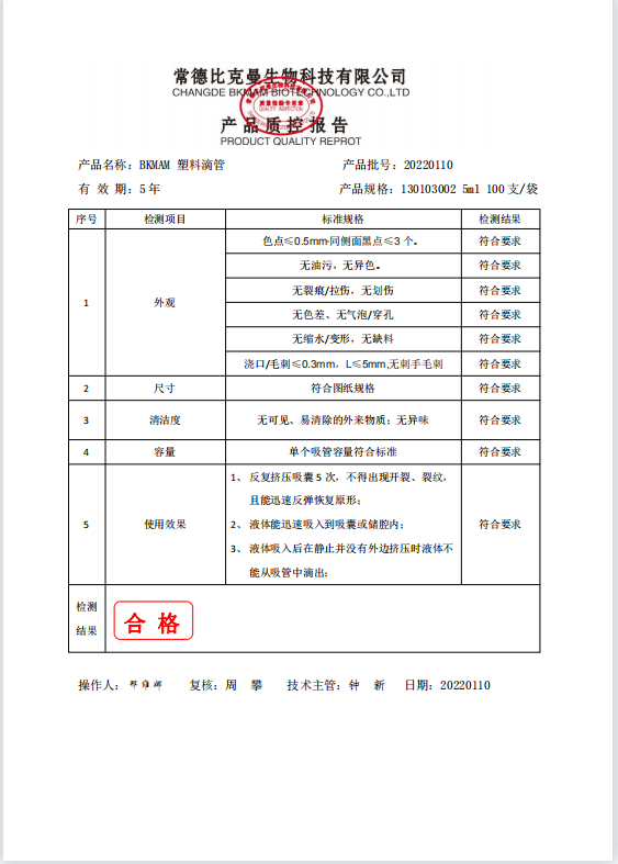 BKMAM 塑料滴管 5ml 100支袋 130103002 20220110