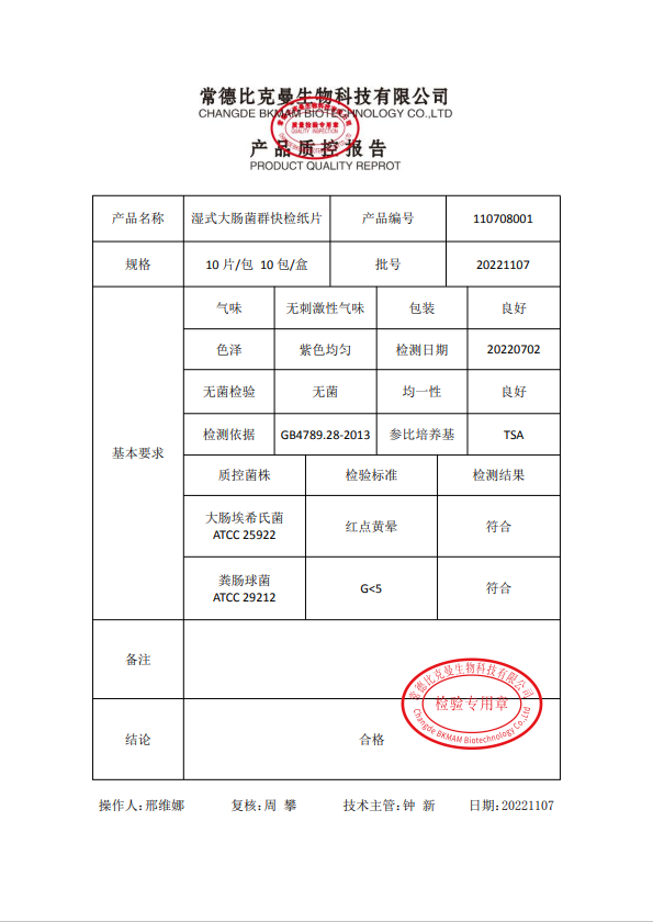 110708001 濕式大腸菌群快檢紙片 100片盒 20221107