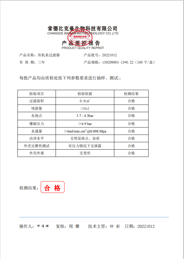 130209004 有機(jī)系過濾器 國(guó)產(chǎn)尼龍6膜 13x0.22綠色 100個(gè)盒 20221012