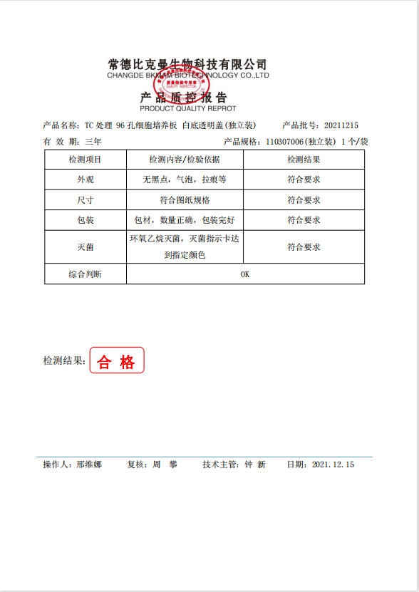 比克曼生物 TC處理 96孔細(xì)胞培養(yǎng)板 白底透明蓋 (獨(dú)立裝) 1個(gè)袋 110307006 20211215