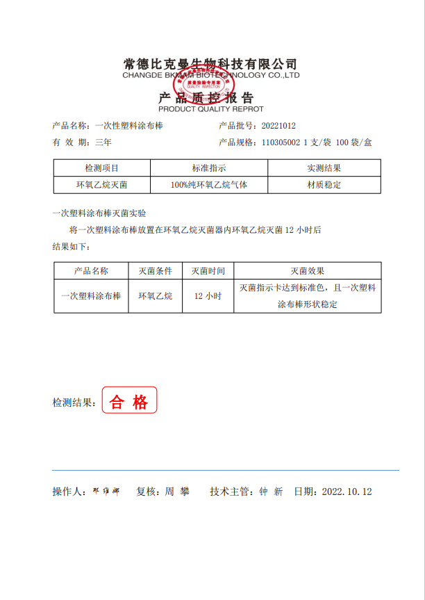 110305002 一次性塑料涂布棒 1支袋 100袋盒 20221012