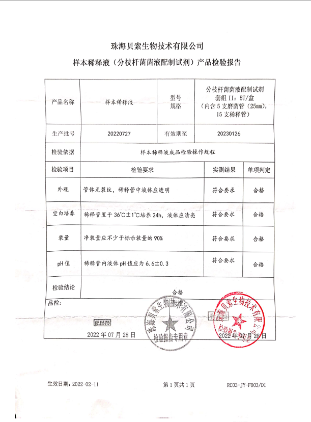 貝索 樣本稀釋液 (25mm)50支盒 BC1113A 20220727