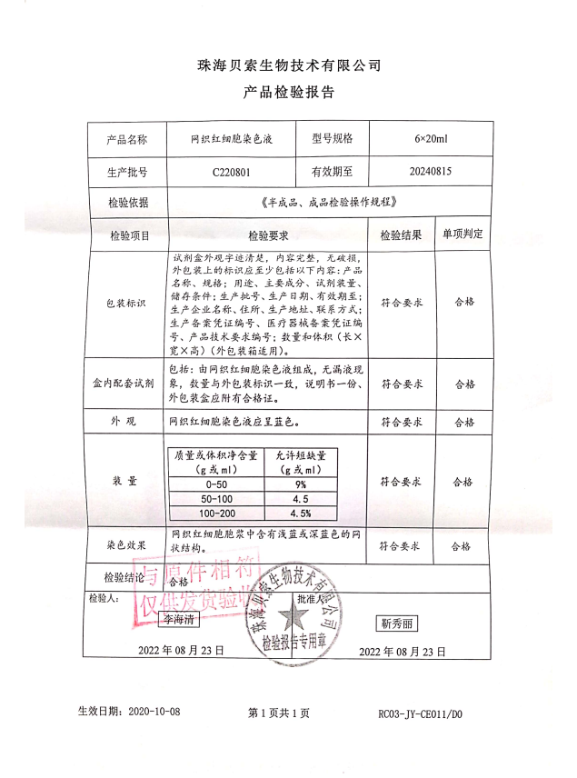 貝索 網(wǎng)織紅細(xì)胞染色液 6x20ml BA4004 C220801