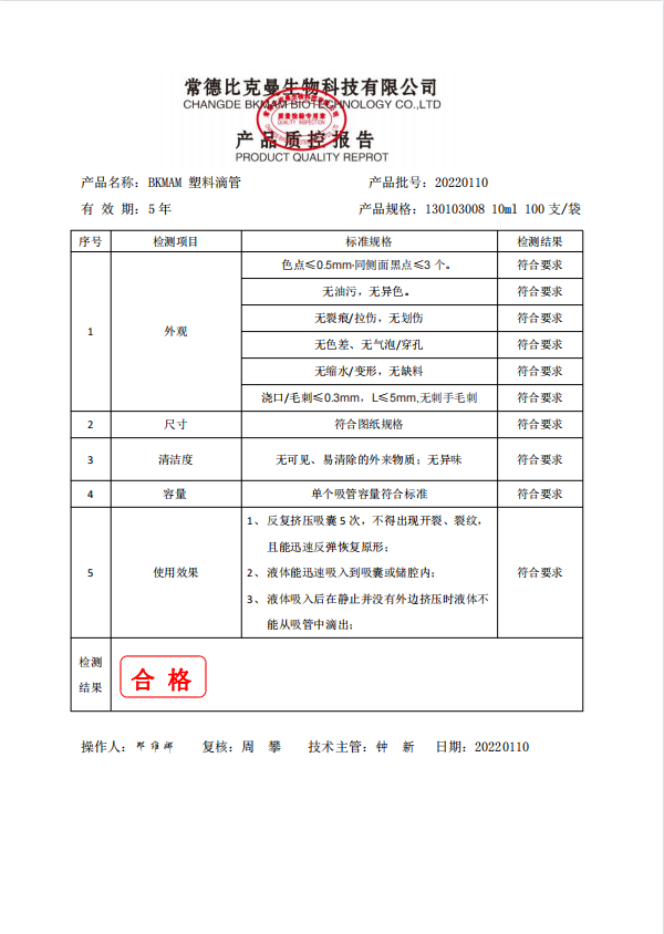 BKMAM 塑料滴管 10ml 100支袋 130103008 20220110