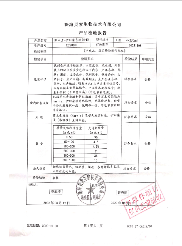 貝索 蘇木素染色液(HE) I型 4x250ml C220801