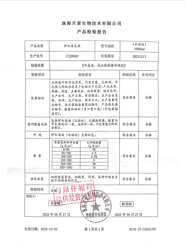 貝索 伊紅染色液(水溶性)1000ml BA4024 C220602