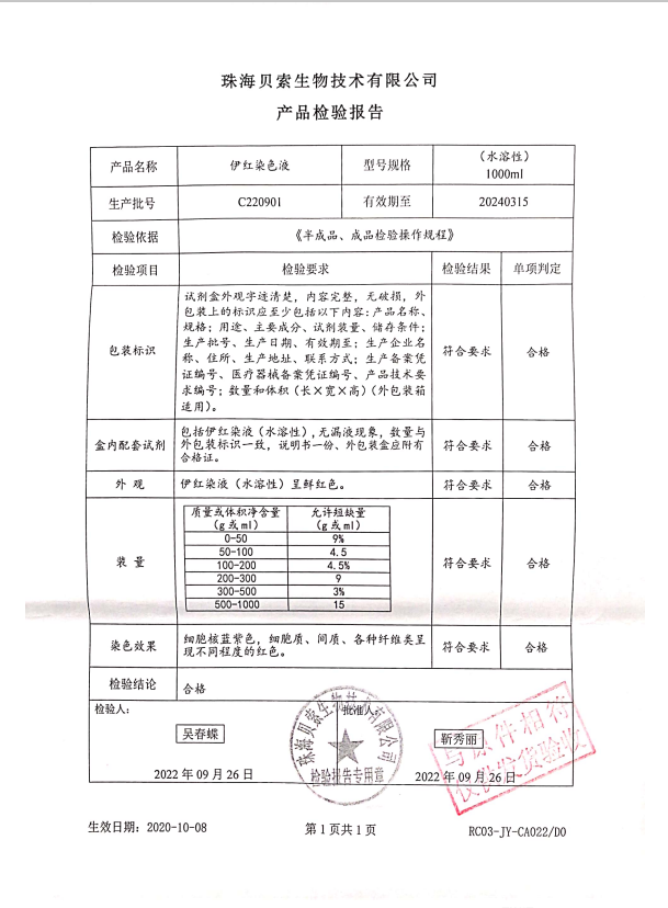 貝索 伊紅染色液(水溶性)1000ml BA4024 C220901