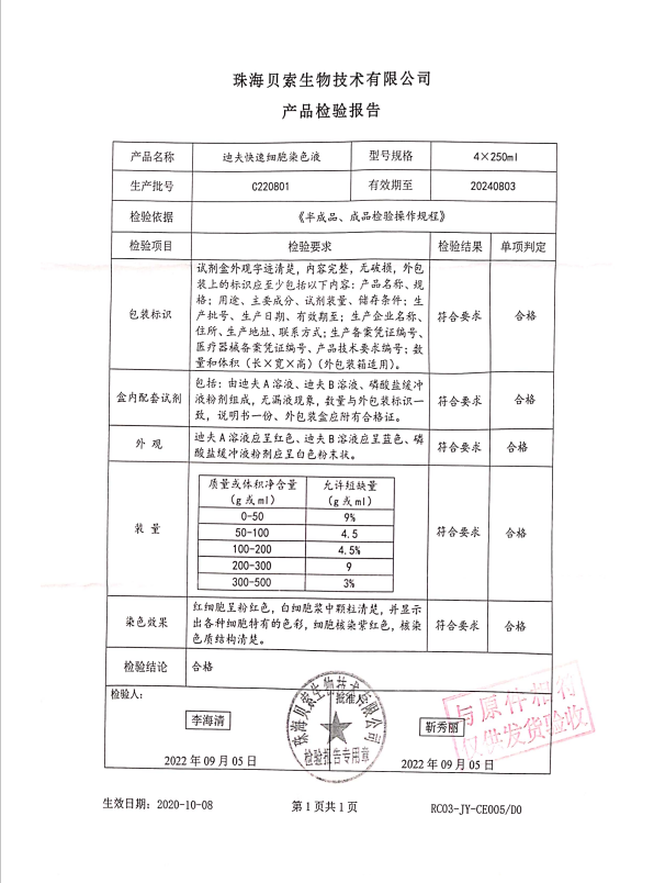 貝索 迪夫快速細(xì)胞染色液 250mlx4 BA4100 C220801