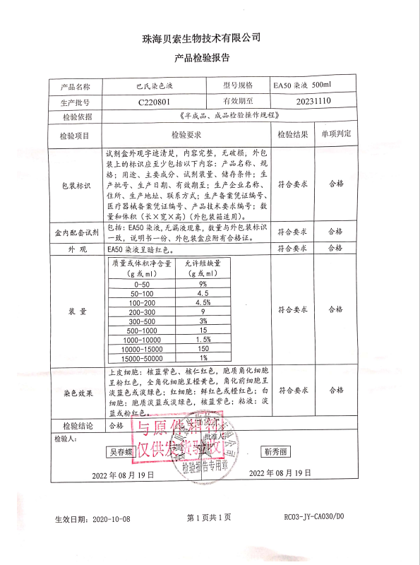 貝索 巴氏染色液 EA-50 500ml BA4033A C220801