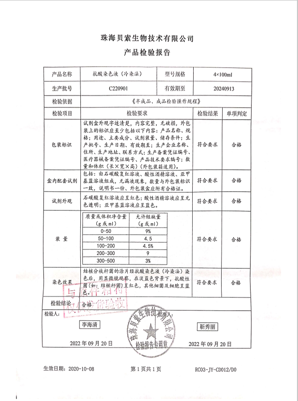 貝索 抗酸染色液(冷染法) 4x100ml C220901