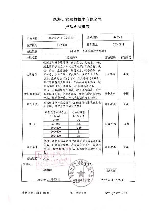 貝索 抗酸染色液(冷染法) 4x20ml C220801