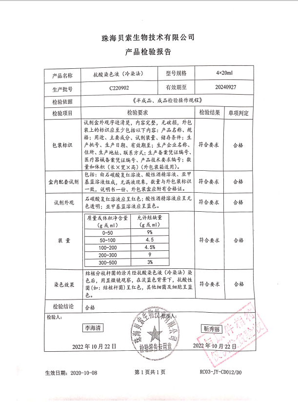 貝索 抗酸染色液(冷染法) 4x20ml C220902