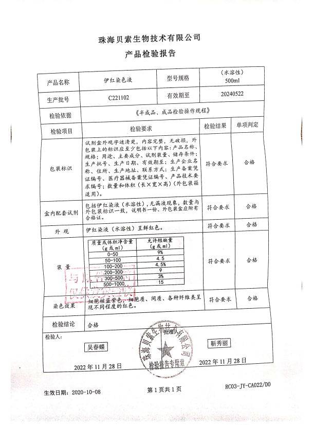 貝索 伊紅染色液(水溶性)500ml BA4098 C221102