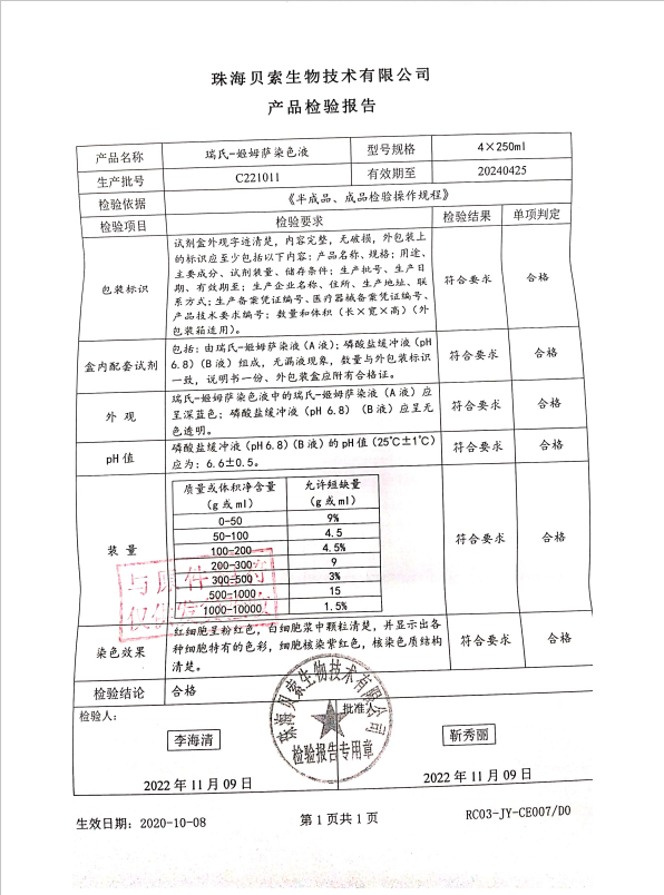 貝索 瑞氏-姬姆薩染色液 250mlx4 C221011