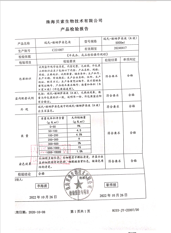 瑞士-姬姆薩染色液 (A液) 1x5000ml C221007