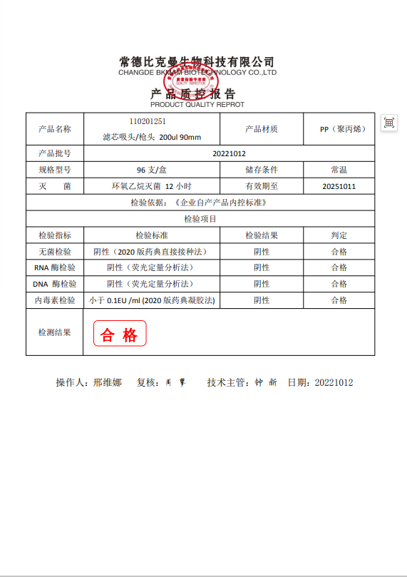 110201251 200ul加長(zhǎng) 濾芯吸頭 槍頭 90mm 96支裝 20221012