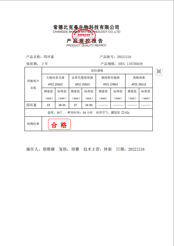 110705039 四環(huán)素 30UG 20片瓶 20221216