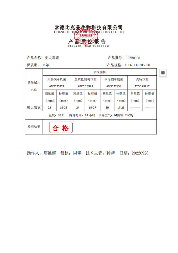 110705038 慶大霉素 10UG 20片瓶 20220928
