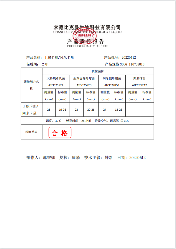 110705013 阿米卡星 30UG 20片瓶 20220512
