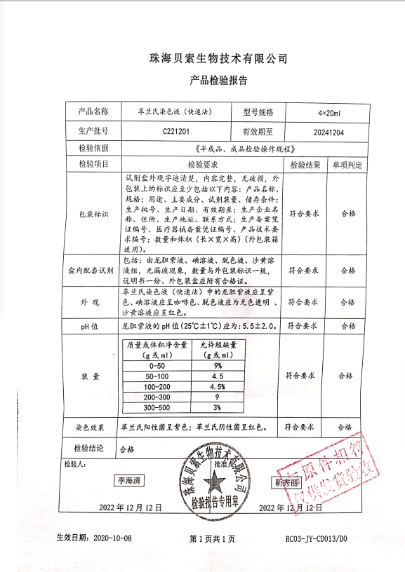 貝索 革蘭氏染色液(快速法) 20ml4盒 BA4032 C221201