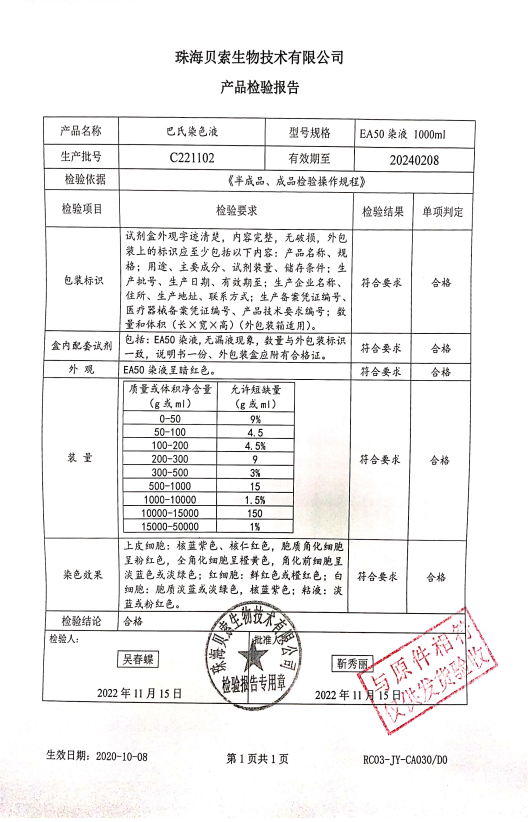 貝索 巴氏染色液 EA-50 1000ml BA4036A C221102
