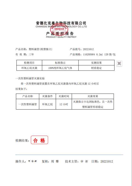 110205004 比克曼生物 塑料滴管(紙塑獨立) 0.2ml 1支袋 120袋包 20221012