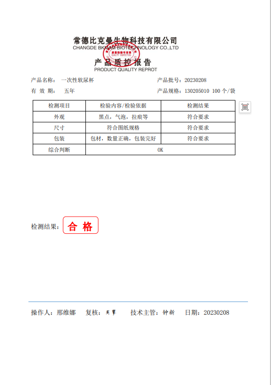130205010 BKMAM 一次性軟尿杯 100個袋 20230208