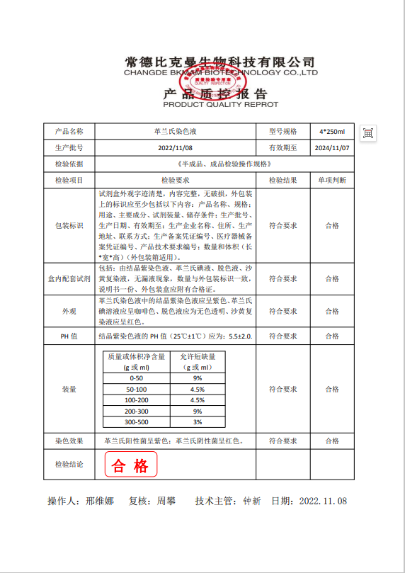 比克曼生物 革蘭氏染色液 250ml4支裝 110703004 20221108
