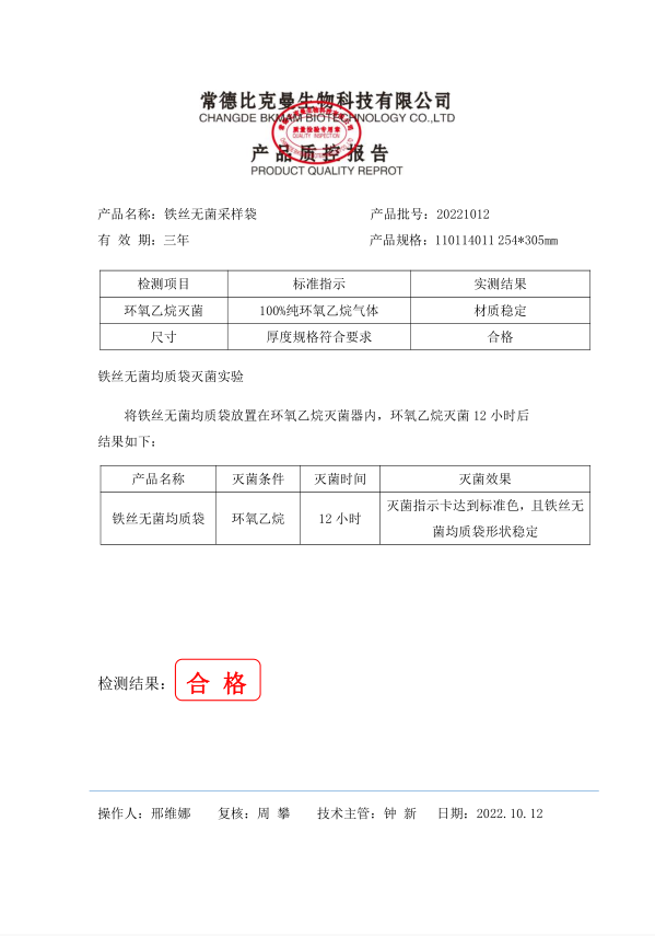 110114011 比克曼生物 鐵絲無(wú)菌采樣袋 254x305 (帶書寫區(qū)域) 50個(gè)裝 20221012