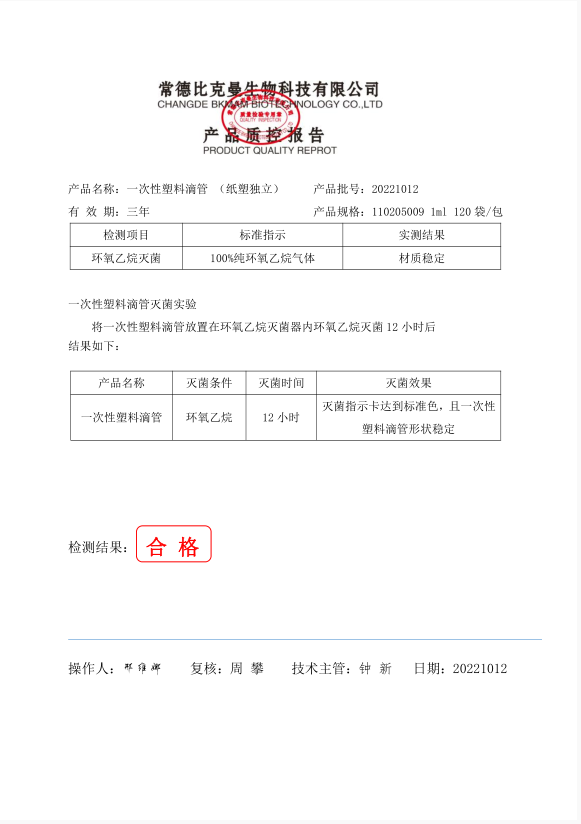 110205009 比克曼生物 紙塑滴管 (紙塑獨(dú)立) 1ml 1支袋 120袋包 20221012