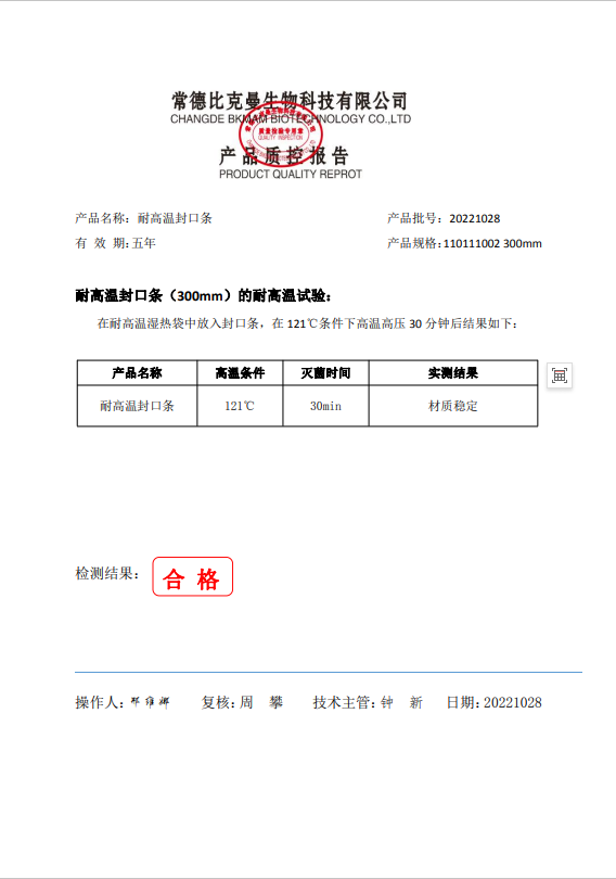 110111002 比克曼生物 耐高溫封口條 300mm 50根包 20221028