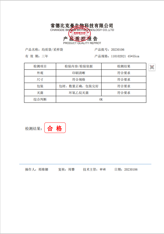 110102021 比克曼生物 無菌采樣袋 45x55 (帶壓條) 50個(gè)裝 20230106