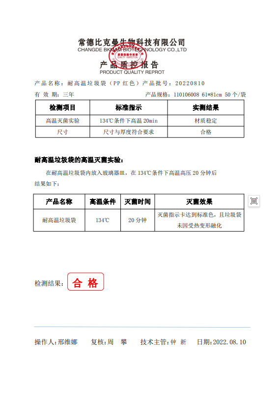110106008 比克曼生物 耐高溫垃圾袋生 紅色 61x81cm (PP復(fù)合膜材質(zhì)) 50個(gè)袋 20220810