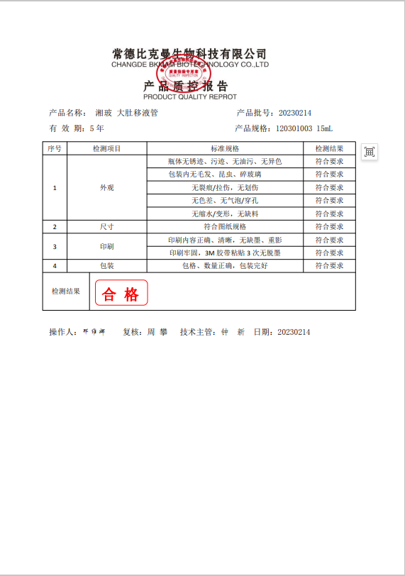120301003 湘玻 大肚移液管 15ml(可過檢) 10支盒 20230214