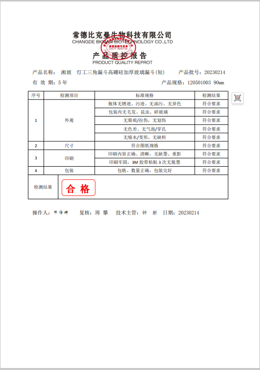 120501003 湘玻 燈工三角漏斗高硼硅加厚玻璃漏斗(短) 90mm 10個(gè)盒 20230214