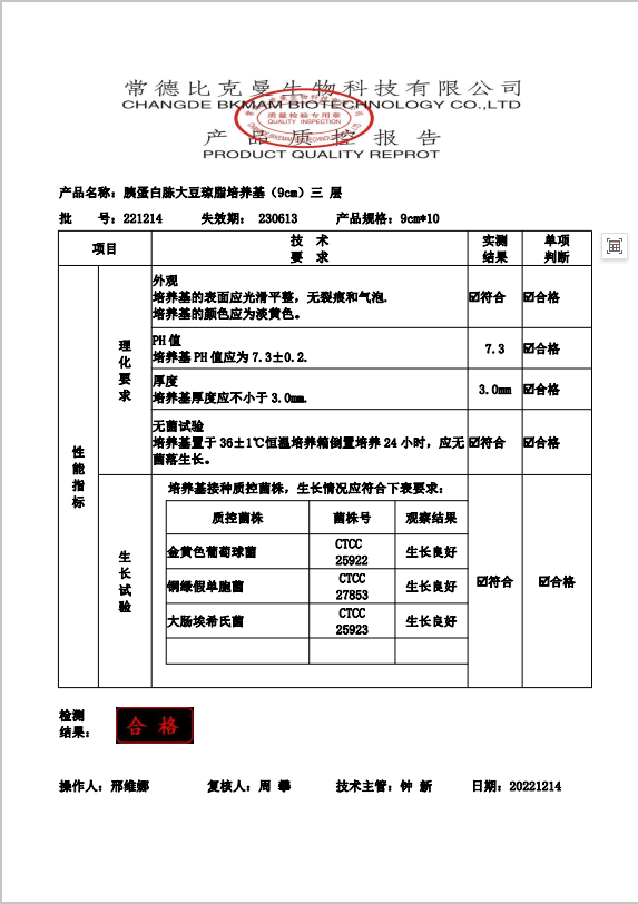 110704022 比克曼生物 胰蛋白胨大豆瓊脂(三層包裝) TSA瓊脂平板 9cm 10個(gè)袋 221214